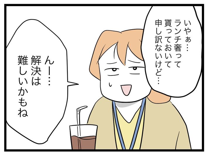 ペキ子の急激な変化に困ってしまった優一は、会社の先輩ママたちに相談するのですが、「解決は難しいかもね」と返されてしまいます。
