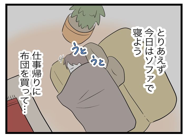とりあえず今日はソファーで寝て、布団を買って明日からはリビングで寝よう。そうすれば大丈夫だ…。