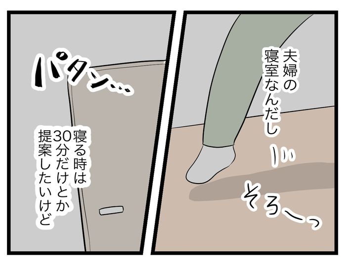 夫婦の寝室なんだし「30分だけにしよう」と提案することも考える優一だったが、さきほどのペキ子の様子を思い出すと聞いてもらえる気がしなくて…。