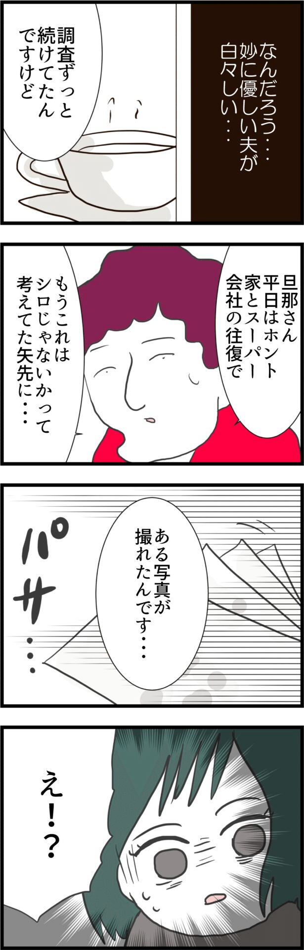 後日、探偵事務所を訪ねると、思いもよらない写真が撮れたらしいのです…。