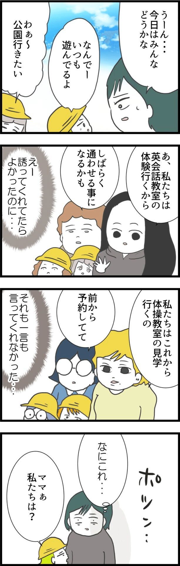 公園に行きたいと言う子どもたちを前に、それぞれ習い事の見学に行くと言い出したママ友たち。