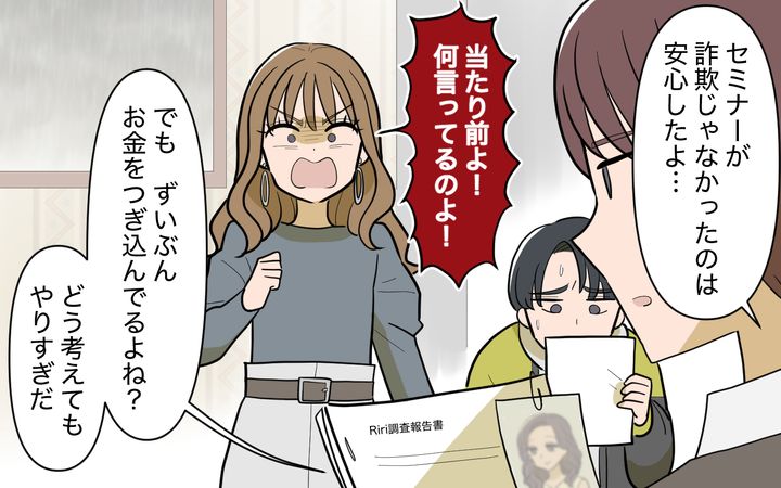 産後心身ともに崩した妻は、セミナーに通うことによって明るさを取り戻すも、セミナーにハマり、家庭を蔑ろにするように。離婚を決意した夫だが、そのタイミングで妻は、義母を強引に同居させてしまう。妻の身辺を調査した夫は、妻、義弟、義母を集めて暴露を始める…!