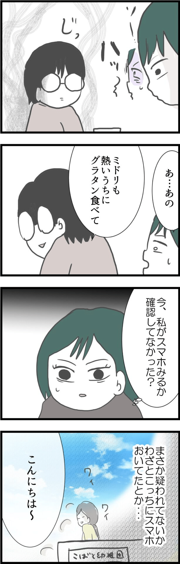 今のうちに…と夫のスマホを見ようとすると、夫はその様子をじっと見ていました。疑っているのを勘づかれたのか…?