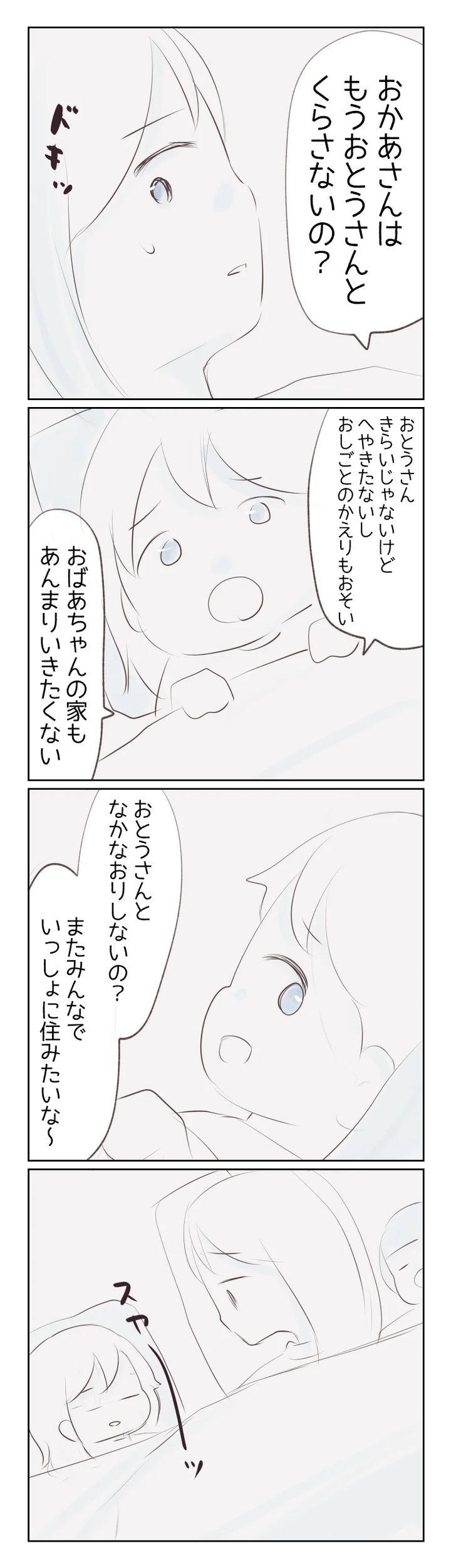 そのとき、長女が「お父さんと仲直りしないの?」「もういっしょには暮らさないの?」と尋ねます。
