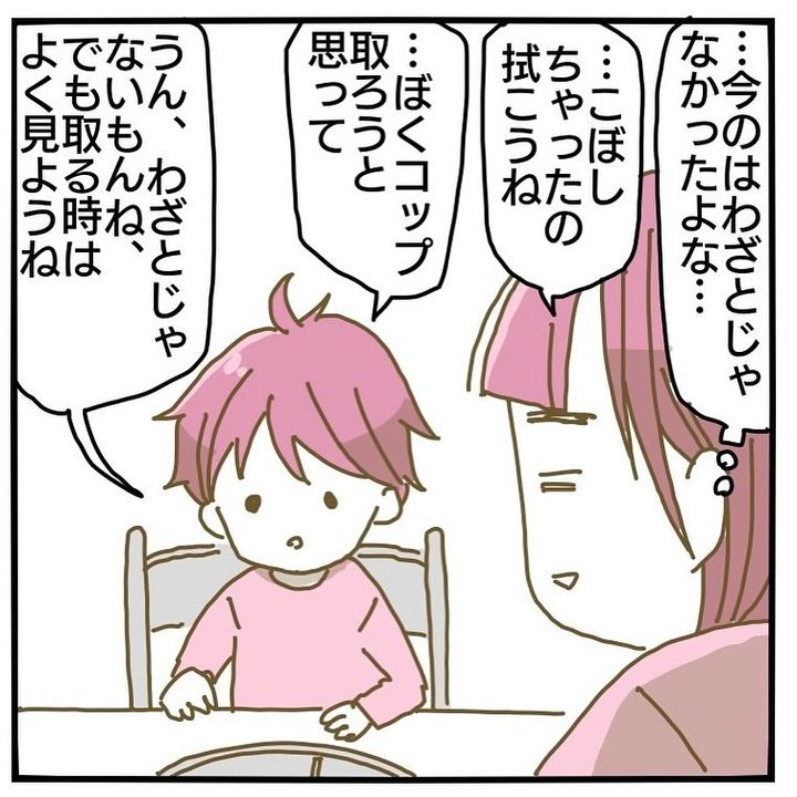 ミスは誰でもしますし、まして3歳の子どもがコップを倒すなんて当たり前にしてしまうことなのに一瞬でいろんな思考が巡って、怒りたくなってしまうんですよね…。