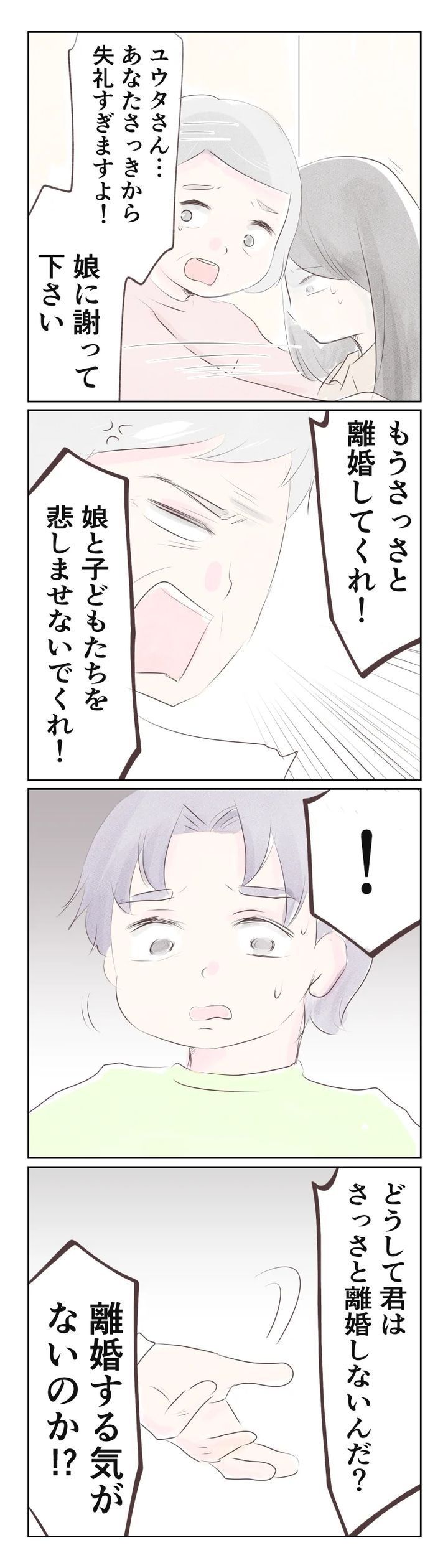 一連のやり取りに激怒した美穂の父はユウタを家に呼びだしますが、ユウタは美穂が悪いと言うばかり…