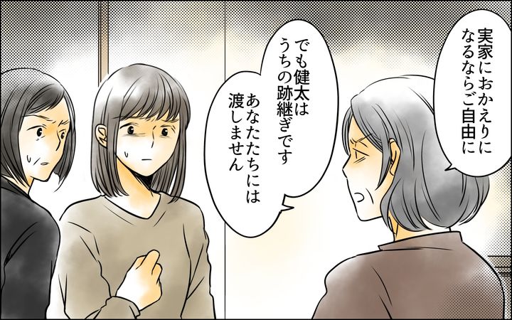 そんな夫とは裏腹に、義母は強気な態度を崩すことはありませんでした。まるで私が悪いかのように言い始め、子どもはあくまでも自分たちの跡取りだと主張して譲らないのです。