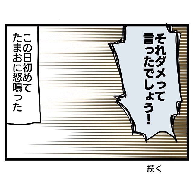 たまおが1歳半になるまで、たまおにイライラしたことがなかったのですが(困ったことや落ち込んだことは何度もありました)、この時はどうにもイライラしてしまい、初めてたまおに怒鳴ってしまいました…。