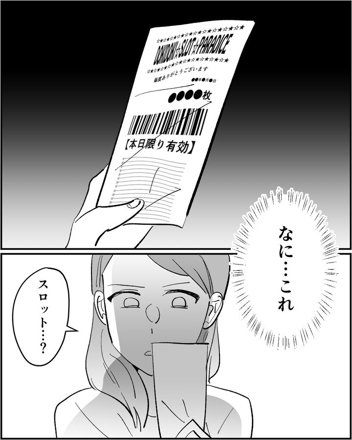 そして、わずかなお金を節約するために、遠いスーパーをはしごする日々が続いていたとき…。夫が行ったと思われるギャンブルのレシートを見つけてしまいます。