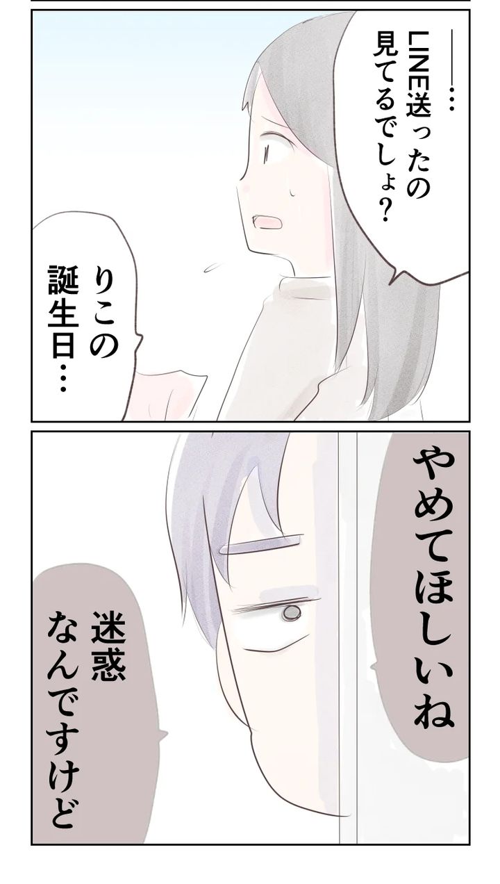 しかし今日は長女の誕生日。今日ばかりは離婚のことはさておき、純粋に祝いたいと考えた美穂さんでしたが…玄関から少しだけ顔をのぞかせたユウタさんは、美穂さんに向かって「迷惑」と言うのでした。
