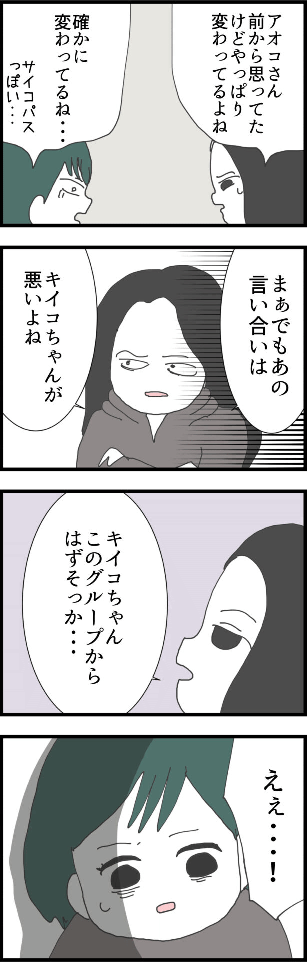 しかし、そもそもケンカの発端はキイコの非常識な行動。クロコは冷めた目をしてキイコをグループからはずそうと言い出しました。