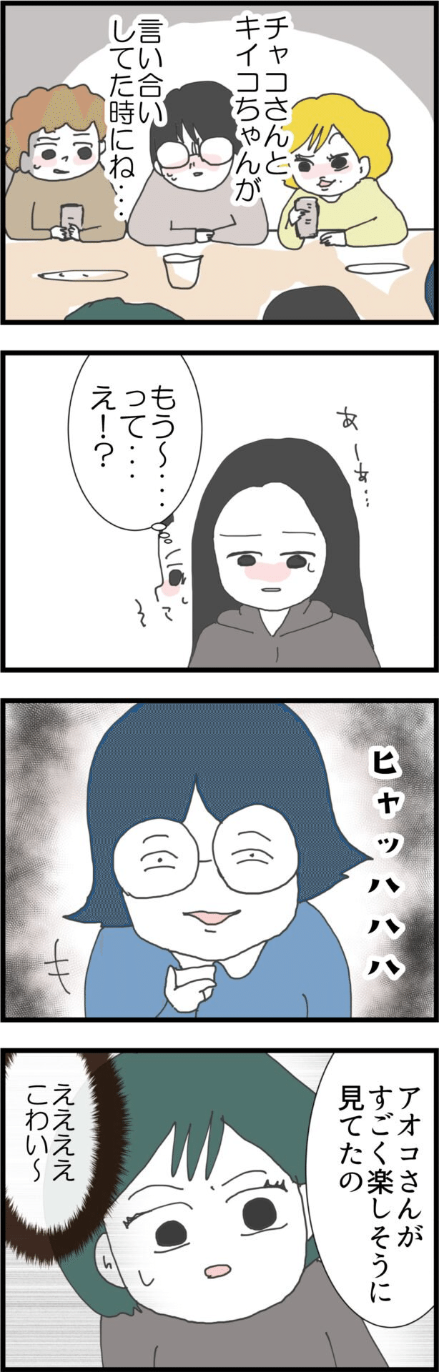 2. 「こわい…」ママ友同士のケンカを楽しんでいた人物が!?【うちの夫と関係が!? 怪しい4人のママ友 Vol.11】