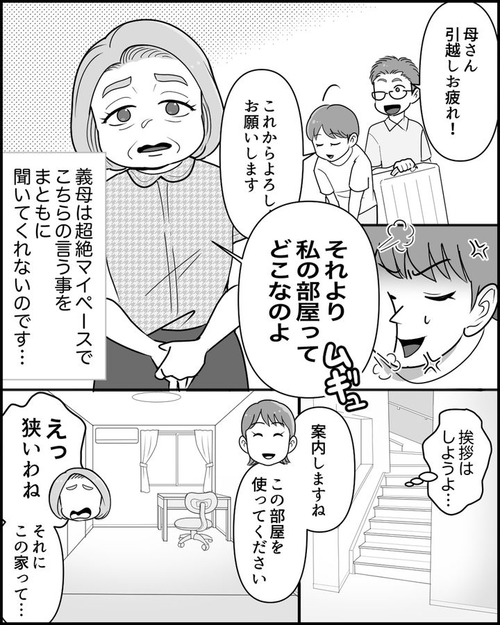 由美は苦手な義母との同居は気が進みませんでした。でも、夫も娘も義母と一緒に暮らすことに賛成だったので、これもご縁だと思い由美も承諾。しかし義母は超絶マイペース。話は聞いてくれず、こだわりも強いのか初日から文句の嵐。