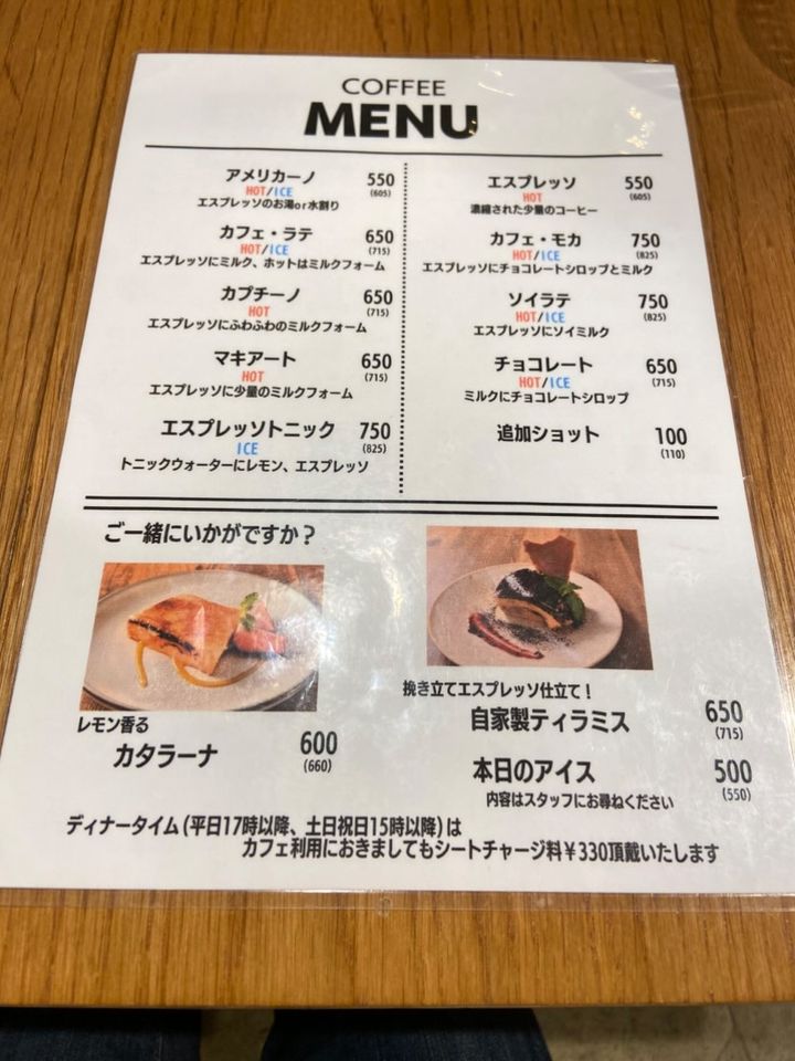 平日カフェタイムのメニュー