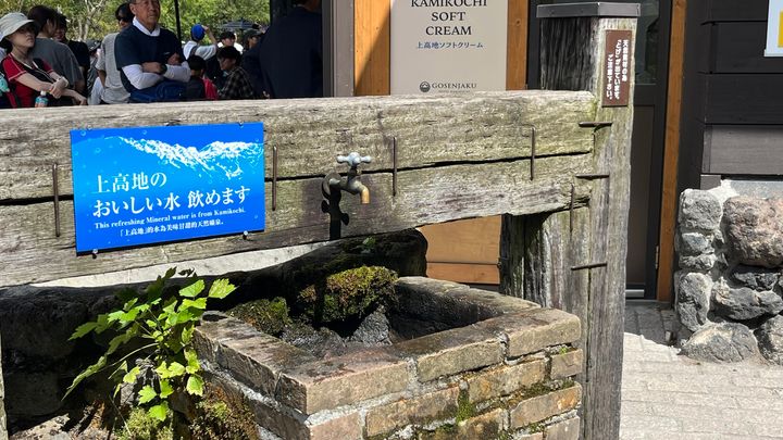 歩き疲れた体に透き通る上高地の水は絶品。ぜひマイボトルを持ってここで水をくんでみて欲しい。