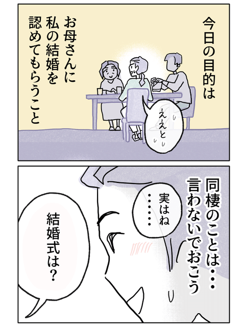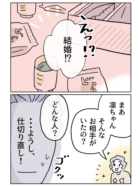 結婚の報告をした凛は、まずは好感触を得ます。同棲のことを話せばややこしくなると感じ、今は胸にしまっておくことにしました。