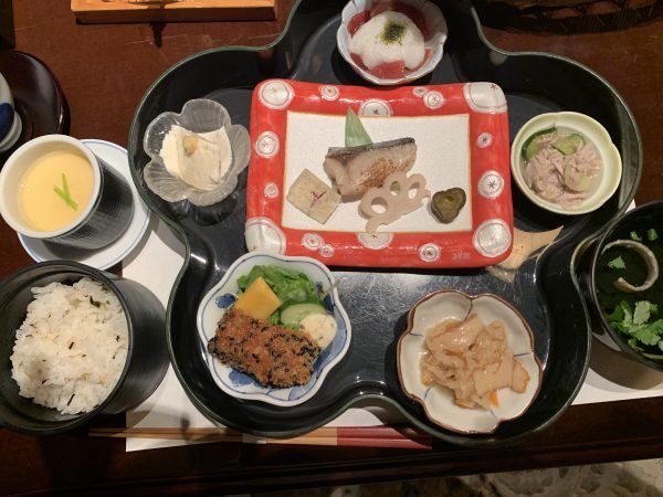 友だちが注文した「おもてなし花かご膳」が運ばれてきました。