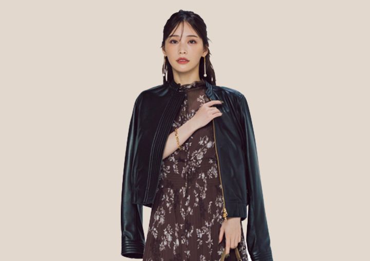 肌に吸い付くようななめらかな革の質感が、フェティッシュなムードを誘い裏ヒットの予感。短丈のコンパクトなシルエット、カラーは黒を選ぶと甘服とも好相性。