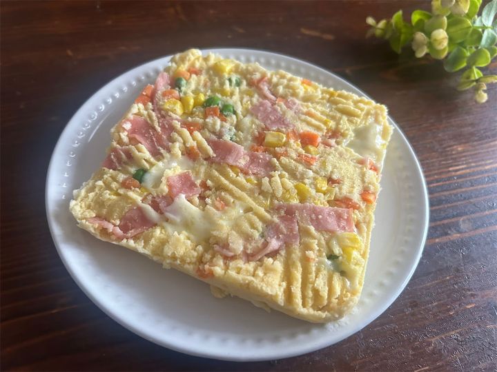 こちらは、解凍したミックスベジタブルとベーコンとチーズ入り♪