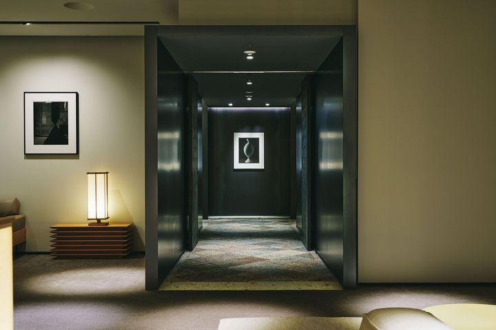 空間設計を手がけたのは、現代美術家・杉本博司と建築家・榊田倫之(正式表記:木へんに神)による新素材研究所。伝統素材を現代的に再構築した設えは、静けさと緊張感を併せ持ち、日本美の本質を感じさせる。ラウンジには、メインルーム、個室、専用化粧室を完備。軽食やドリンクは、テナントと連携したオリジナルメニューだ。季節ごとに内容が刷新され、気鋭のシェフとのコラボによる特別メニューも堪能できる。また今回のリニューアルによって、既存エリアと新生エリアを繋ぐ「路地」が生み出された。「雨水」と「晴水」という2種の香りを楽しめる空間になっているほか、新生エリアの書棚「Curiosity Shelf」では現在、twelvebooks・濱中敦史が選書した世界のアートシーンと繋がる書籍を読むこともできる。