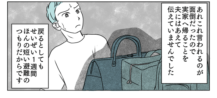 私は一時避難をきっかけに別居や離婚の可能性が出るのでは、と不安になりました。しかし戸惑いつつも、私は母に甘えることを決意します。