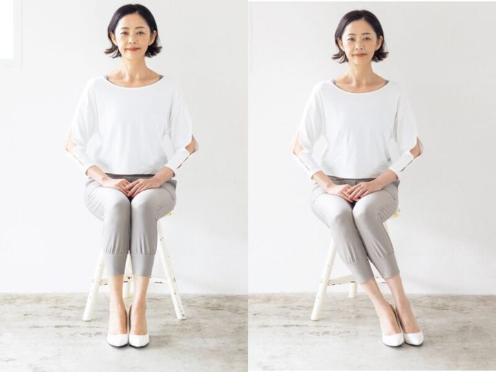下の画像の座り方が無意識にできるよう、コツコツと継続して取り組みましょう。基本の座り方をマスターしたら、より美しく脚が長く見える応用編へ。