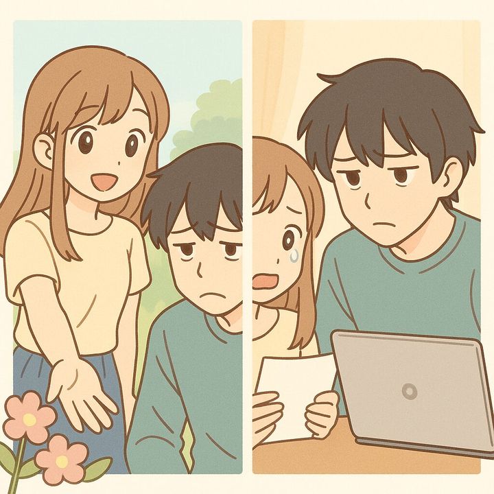 「ごめん、ずっと黙ってて…。フリーターっていうのは嘘なんだ。本当はフリーランスのプログラマーで…。君に嫌われるのが怖くて、言い出せなかった。どうせ俺なんて、信じてもらえないと思って…」
