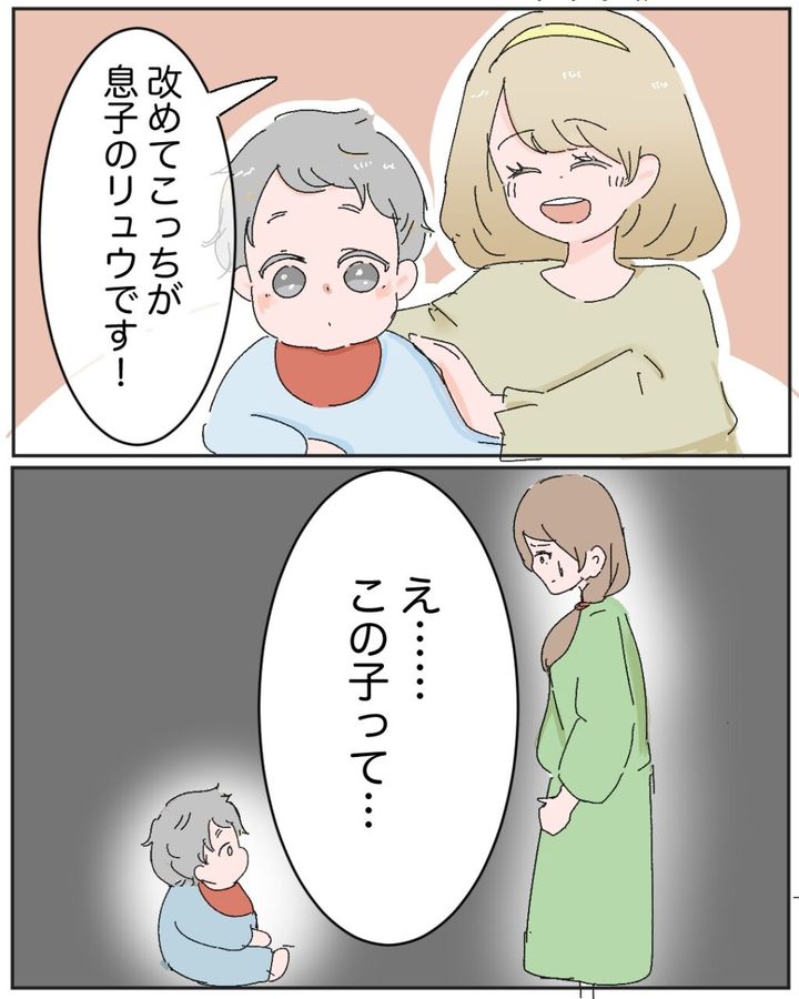 息子のリュウが産まれてから約1年後、幸せの真っただ中にいた俺のもとに、元妻のカオルから一通の封筒が届きました。中身を開くと、そこには目を疑うような内容が。チナツに悟られないよう、動揺した気持ちを落ち着けていると、第二子を出産した妻ツバキさんを連れて、弟のソウが実家に帰ってきました。ツバキさんは、リュウに挨拶をしようと近寄りますが、顔を見るなり「・・・え?」と固まってしまいます。