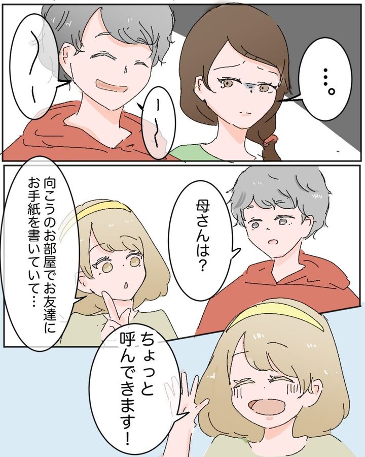 しばらくして、母を呼びに行ったチナツが戻ってきましたが、俺とリュウしかいないリビングを見て「あれ?みんなは?」と不思議そうに聞きました。「ツバキさん、急に調子が悪くなっちゃってすぐ帰ったよ」と伝えると、「あら・・・それは心配ねぇ」と不安そうに言いました。