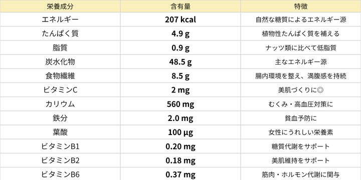「ただし糖質が多いので、1日5〜6粒(約50g)を目安に。お菓子の代わりや主食の一部に置き換えるのがおすすめです」