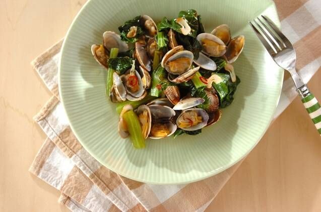 ピリッと効いた唐辛子の辛味に、アサリのだしがやさしく重なります。シャキシャキの小松菜がアクセントになり、軽やかで後味すっきり。バゲットを添えるのも◎です。
