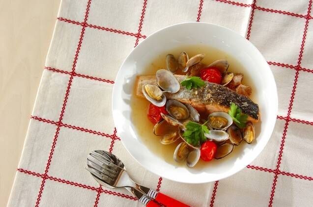 アサリのだしが鮭にしっかりとしみ込み、ふっくらとした身が絶品です。トマトの酸味とオリーブオイルのバランスが見事。10分で作れるとは思えない本格派の仕上がりです。見た目も華やかで、特別な日の食卓でも活躍します。