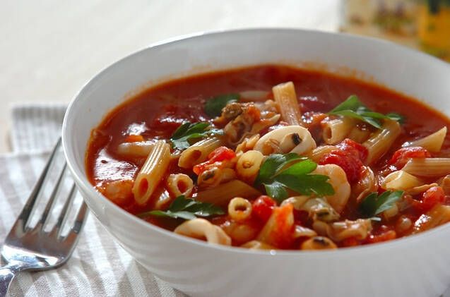 魚介の旨味を余すところなく楽しめるスープパスタ。アサリのだしが溶け込んだトマトスープは、まるでレストランの味わい。食べ応えがあるためランチにおすすめです。