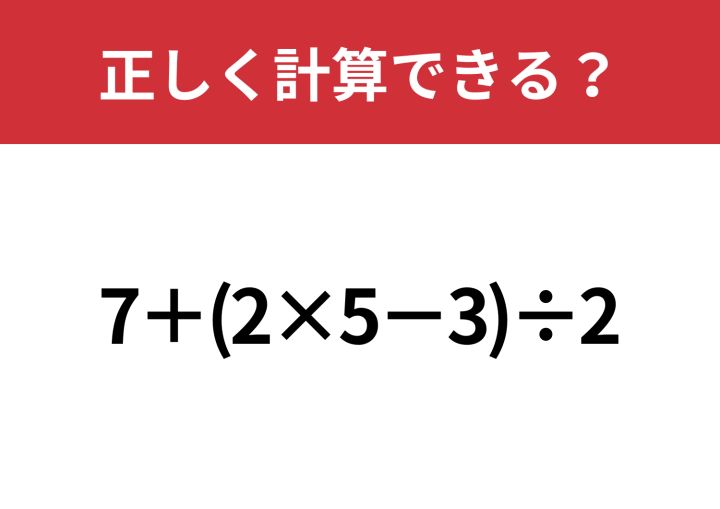 答えが出せたらスッキリ!「7+(2×5−3)÷2」正しく計算できる?