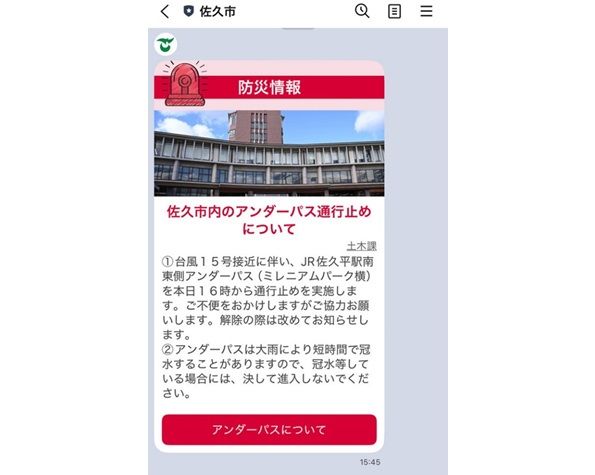また市が配信する防災情報をLINEで受信できるように設定してあるので、そちらのチェックも忘れないように書き込みます。