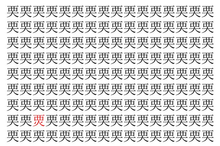 【脳トレ】「䙲」の中に紛れて1つ違う文字がある!?あなたは何秒で探し出せるかな??【違う文字を探せ!】