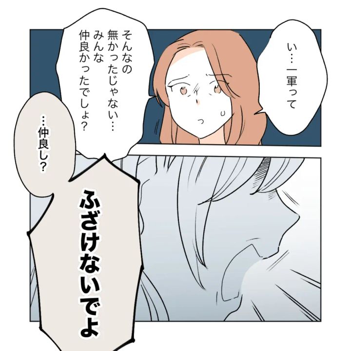 「い・・・一軍って、そんなの無かったじゃない・・・みんな仲良かったでしょ?」カエデは困惑した表情でシズクを見つめます。そう言ったカエデに、シズクは「・・・仲良し?ふざけないでよ!」と急に声を荒げました。