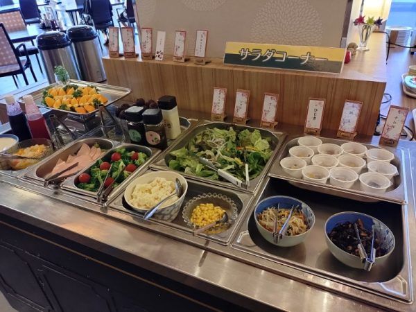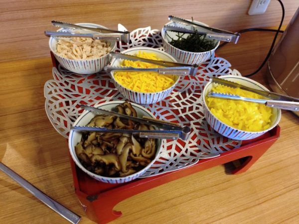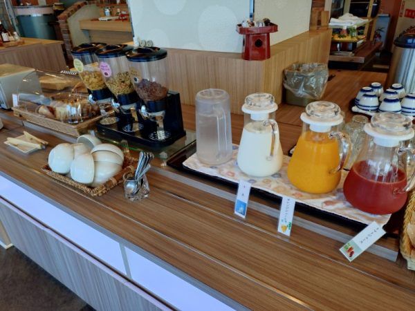 朝は、おかず膳があり、ご飯やパン、サラダ、シリアル、飲み物はバイキング形式です。鹿児島らしく「鶏飯」もありましたよ~。バイキング楽しいですよね。普段よりたくさん食べちゃいます。