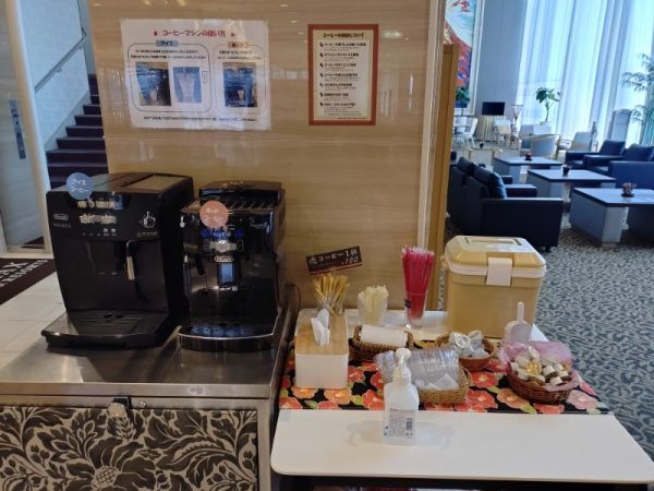 館内には子どもが楽しめるゲームセンターや女性にうれしい色浴衣、宿泊中一杯無料のコーヒーサービス、その他にも鹿児島らしい迫力のある桜島の絵や鹿児島の案内本などたくさんのサービスや心配りが見られました。