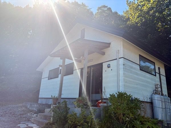山道をのぼっていくと、白い建物が見えてきます。 こちらが「モリネコ堂」。