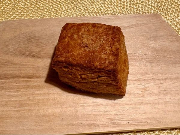 「全粒粉スコーン」(300円) 北海道有機小麦全粒粉100%のスコーンはシンプルな味わいが魅力。 ざっくりとした外側としっとりした内側の対比がありつつも、決して口の中の水分を奪わない。 噛みしめるほどにほんのりとした甘みがあり、何もつけずにそのまま味わうのがオススメ。