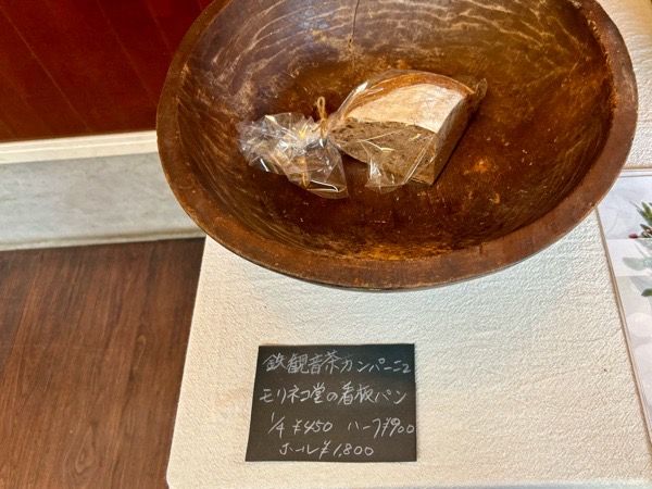 「鉄観音茶カンパーニュ」(1/4 450円) モリネコ堂さんの提唱する、「ケの日のパン」を体現しているパン。 古代小麦と焙じ茶酵母の香り、酸味が爽やかで、いくらでも食べられてしまいそう。 まさに日々の糧となる存在で、どんな食事とも相性の良いパンです。