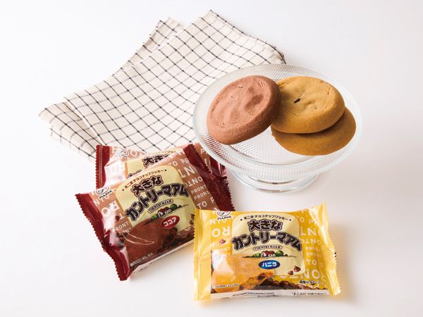 おなじみの不二家のカントリーマアムとプロントがコラボしたアイテムがプチスイーツに仲間入り。通常のカントリーマアムの約5倍という圧巻のサイズ感。小腹が空いたときのおやつにぴったりです。バニラとココアの2種がラインアップ。プロントのロゴ入りパッケージも目を引きます。