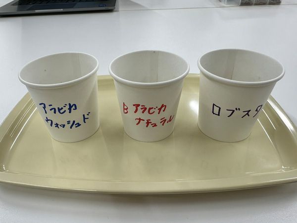 教室に戻っての座学では、アラビカ種とロブスタ種の違い、精製方法(ナチュラル・ウォッシュド)の特徴などを学びます。基礎知識を知ると、普段飲んでいるコーヒーへの見方が変わりますね。