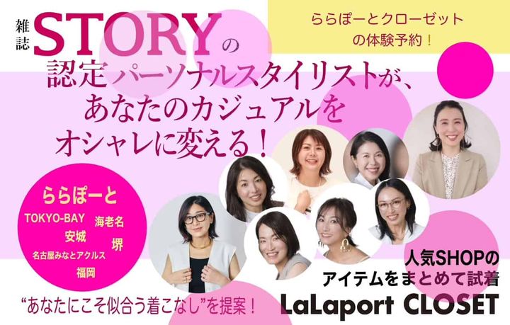 「STORYが街に出る!」をコンセプトにスタイリングサービスを行うイベントです。誌面でも活躍中のSTORY認定パーソナルスタイリストたちが、あなたの体型や雰囲気に合う服を探しながら、トレンドの着こなしをアドバイスします。会場はららぽーと内のさまざまなブランドの中から選りすぐりの旬を集めたセレクトショップ「LaLaport CLOSET」。気にいった服は、その場でららぽーとのECサイト〈&mall〉から購入できるので、手ぶらでSHOPPINGが楽しめます。