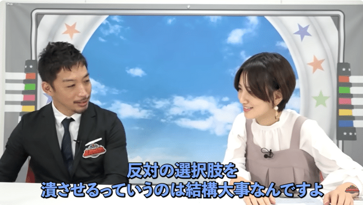 たとえば、「今(収録日の10月18日時点で)みんな高市新総裁が総理になるっていうふうに思ってますよね。といった時に、野党の統一候補が総理になることはあるんですかないんですか、みたいなこと」を聞くという。「最後のキャスティングボート(決定票)を握っているのは吉村さんですから、(吉村さんが)『ない』って言ったら、『ああ高市さんに投票するってことですね』って事がほぼ決まるわけじゃないですか」と、実のある発言を引き出すための駆け引きテクニックを解説。