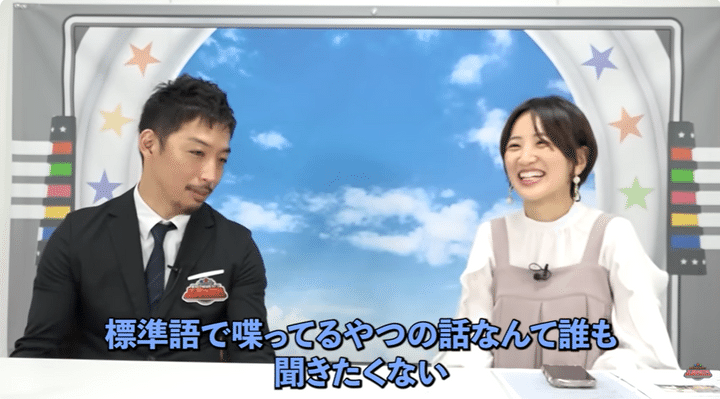 番組では「(関西の)レギュラーの皆さんの布陣が強いじゃないですか。僕ら東京から来て、標準語で喋ってるやつの話なんて誰も聞きたくない。まあ静かにしてようって思ってます」と発言を控えているという西田氏は、「僕ネットの方が得意なんで」「ネットだと無敵です」とYouTubeチャンネルでは冒頭から喋りまくり!
