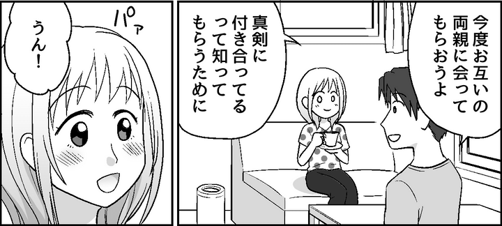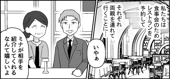当日。私と両親は少し早く着いたので、先に席に座ってショウタたちを待ちました。するとショウタがあとから店に入ってきました。礼儀正しく丁寧に挨拶をするショウタのことを、私の両親も気に入ってくれたようでした。