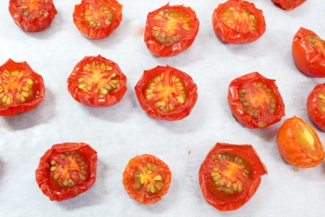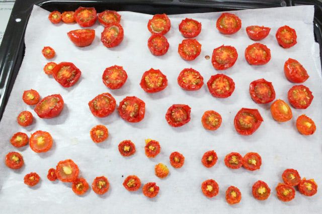 ドライトマトは一般的にはトマトを天日干しにし、数日間かけてトマトの水分を抜いて作りますが、オーブンを使えば2時間かかるとはいえ、天日干しに比べるとあっという間に作ることができ、加熱中もオーブンにお任せなので、とても簡単に、しかもリーズナブルに作ることが出来ました♪