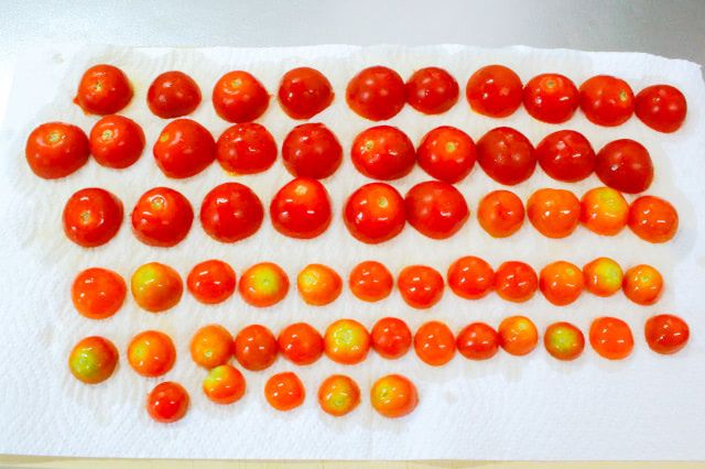 今回はオーブンで作るセミドライトマトに挑戦。天日干し不要なので、季節や天候を問わずに気軽に作れるのがうれしい♪材料はミニトマトとオリーブオイルの2つだけ。さっそく仕込んでみます。